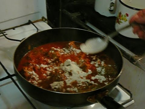 - A zsíron megkérgesítjük a húst, hozzáadjuk a felaprított vöröshagymát és megsózzuk,borsozzuk.