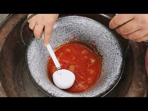 A lisztből és a kukorica lisztből zsemleszínű rántást készítünk. Hozzáadjuk a passzírozott paradicsomot, megsózzuk és beletesszük a cukrot is és beleöntjük a főzővizet. Összeforraljuk. Kóstolás után még adhatunk hozzá sót és cukrot. Mivel mi édesen szeretjük, még egy evőkanál kristálycukrot adtunk hozzá. Beletesszük a gombócokat is és 5 percig együtt forraljuk. Tálaláskor friss kenyérrel vagy főtt krumplival kínáljuk. Jó étvágyat kívánunk.