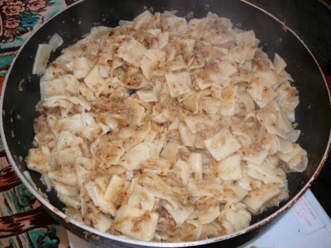 Belisztezett deszkán a tésztát 2-3 mm vastagságúra nyújtjuk és ismét belisztezzük vékonyan. Ezután a rúdra feltekerve hosszában kettévágjuk,majd ismét hosszában, négy egyforma szélességű csíkot vágunk belőle. Ezután felkockázzuk és bő, sós, forrásban lévő vízben, melybe beleöntjük a maradék étolajat, kifőzzük.