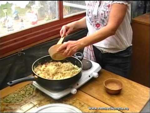 A megfőtt nokedlit rámerjük és összevegyítjük.