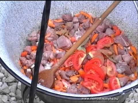 - A kisütött szalonna zsíron lepirítjuk a vadat és a marhát,meghintjük az aprított hagymával,a felkockázott zellerrel, a sárgarépával.